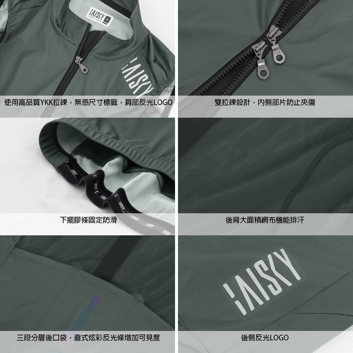 YKK double zipper design allows easy adjustment of body temperature while riding; smooth and secure to use.