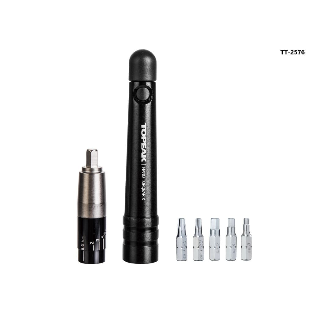 NANO TORQBAR XMẪU SỐ: TT2576SỰ MIÊU TẢ:Cờ lê mô-men xoắn nhỏ gọn, dễ sử dụng và đọc giúp siết chặt chính xác các bu lông trên khung và bu lông thành phần theo giá trị mô-men xoắn khuyến nghị để đảm bảo an toàn và hiệu suất. Hai trong số những món đồ yêu thích của bạn có thể được đựng trong tay cầm của Nano TorqBar X để sử dụng ngay và thậm chí còn có tính di động cao hơn trong khi lái xe. Phạm vi mô-men xoắn: 2 – 6 Nm.Dung sai +-10% được đảm bảo cho 5000 chu kỳCHỨC NĂNG:11CÔNG CỤ: 3/4/5 bit AllenBit T20 / T25 Torx®TORQ RANGE:2 -6 Nm (Dung sai: +/- 10%)VẬT LIỆU CÔNG CỤ: Thép cứngVẬT LIỆU TORQBIT:Thép / NhômVẬT LIỆU THÂN: Nhôm / Polymer cấp kỹ thuậtTÍNH NĂNG BỔ SUNG: Tay cầm, TorqBit, tuốc nơ vít TorqBit, ngăn TorqBit, ngăn tích hợp cho hai mũi khoan, Dây đeo cao su, Hộp đựngKÍCH THƯỚC:15,2 x ø2,1 cm / 6” x 0,8”TRỌNG LƯỢNG:64 g / 2,26 oz (TorqBar) 130 g / 4,59 oz (TorqBar với 1 TorqBit & 2 bit)————————–NANO TORQBAR XMODEL NO: TT2576DESCRIPTION:Compact, easy to use and read torque wrench provides correct tightening of bolts on frame and component bolts to recommended torque values for safety and performance. Two of your favorite bits can be carried in the handle of the Nano TorqBar X for immediate use and even greater portability during rides. Torque range: 2 – 6 Nm.The +-10% tolerance is guaranteed for 5000 cyclesFUNCTIONS:11TOOLS:3 / 4 / 5 Allen bitsT20 / T25 Torx® bitsTORQ RANGE:2 -6 Nm ( Tolerance: +/- 10%)TOOL MATERIAL:Hardened steelTORQBIT MATERIAL:Steel / AluminumBODY MATERIAL:Aluminum / Engineering grade polymerADDED FEATURE:Handle, TorqBit, TorqBit screwdriver, TorqBit compartment, Integrated compartment for two bits, Rubber strap, Carry caseSIZE: 15.2 x ø2.1 cm / 6” x 0.8”WEIGHT: 64 g / 2.26 oz (TorqBar) 130 g / 4.59 oz
