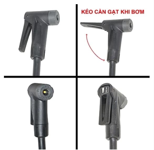 Hỗ trợ 3 loại đầu van : Van Pháp / Van Mỹ / Van Dunlop ( không cần đổi đầu )