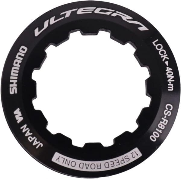Genuine Shimano replacement lock ring and washer set for the ULTEGRA CS-R8100 12-speed cassette. Provides secure cassette installation and smooth drivetrain performance.