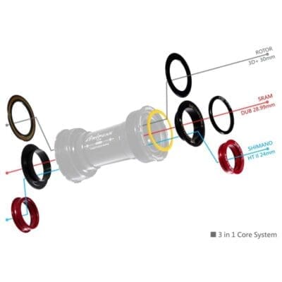 Trục giữa Tripeak BBright Twistfit cho hệ 3 giò 3in1, bạc đạn Ceramic Bearing / Steel Bearing
