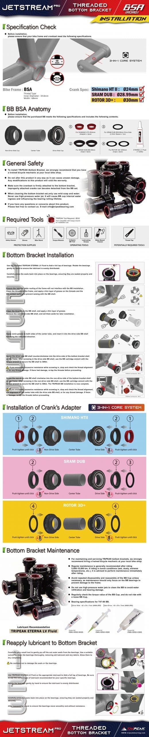 (BB4Y-001) Trục giữa BB TRIPEAK BSA cho hệ 3 giò 3in1, bạc đạn ceramic Coated Hybrid Bearing