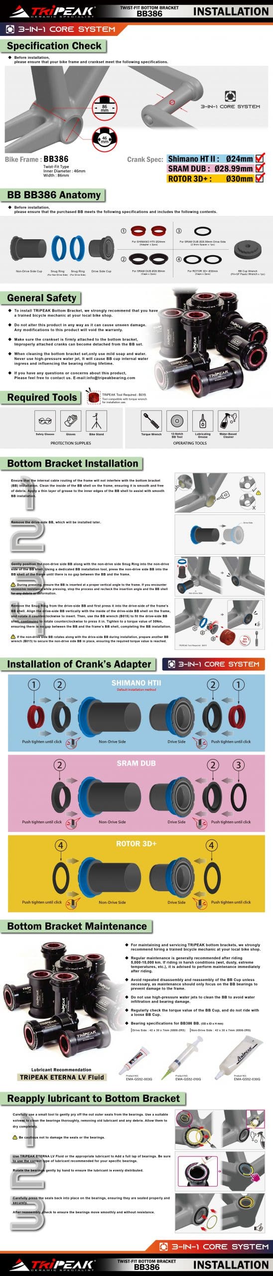 Trục giữa BB TRIPEAK BB386 Twistfit cho hệ 3 giò 3in1, bạc đạn Ceramic Bearing / Steel Bearing