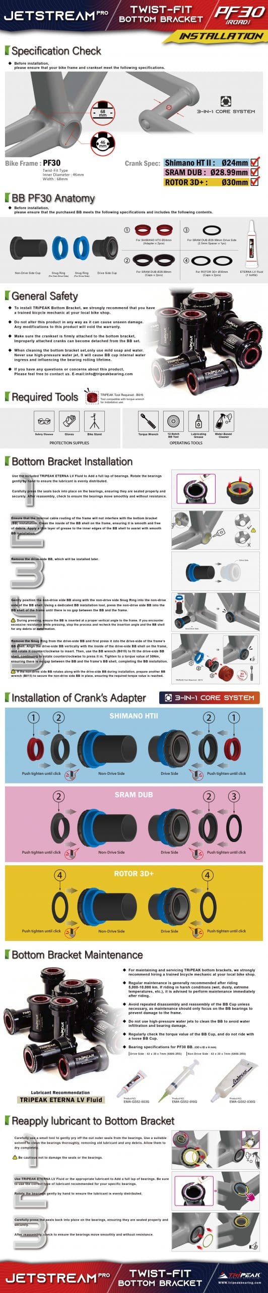 (BB4Y-010) Trục giữa PF30 TRIPEAK trục hệ 3 giò 3in1, bạc đạn ceramic Coated Hybrid Bearing